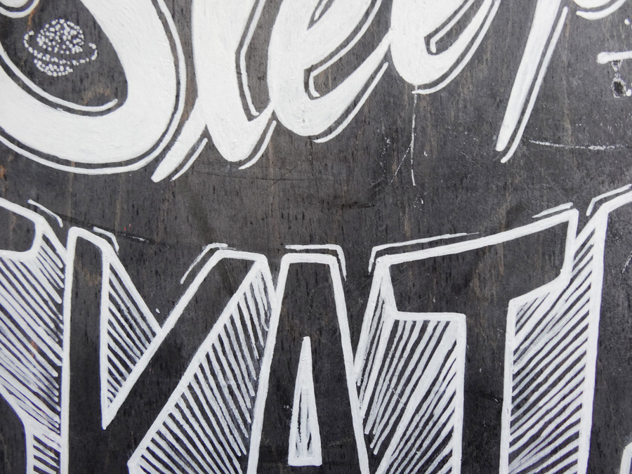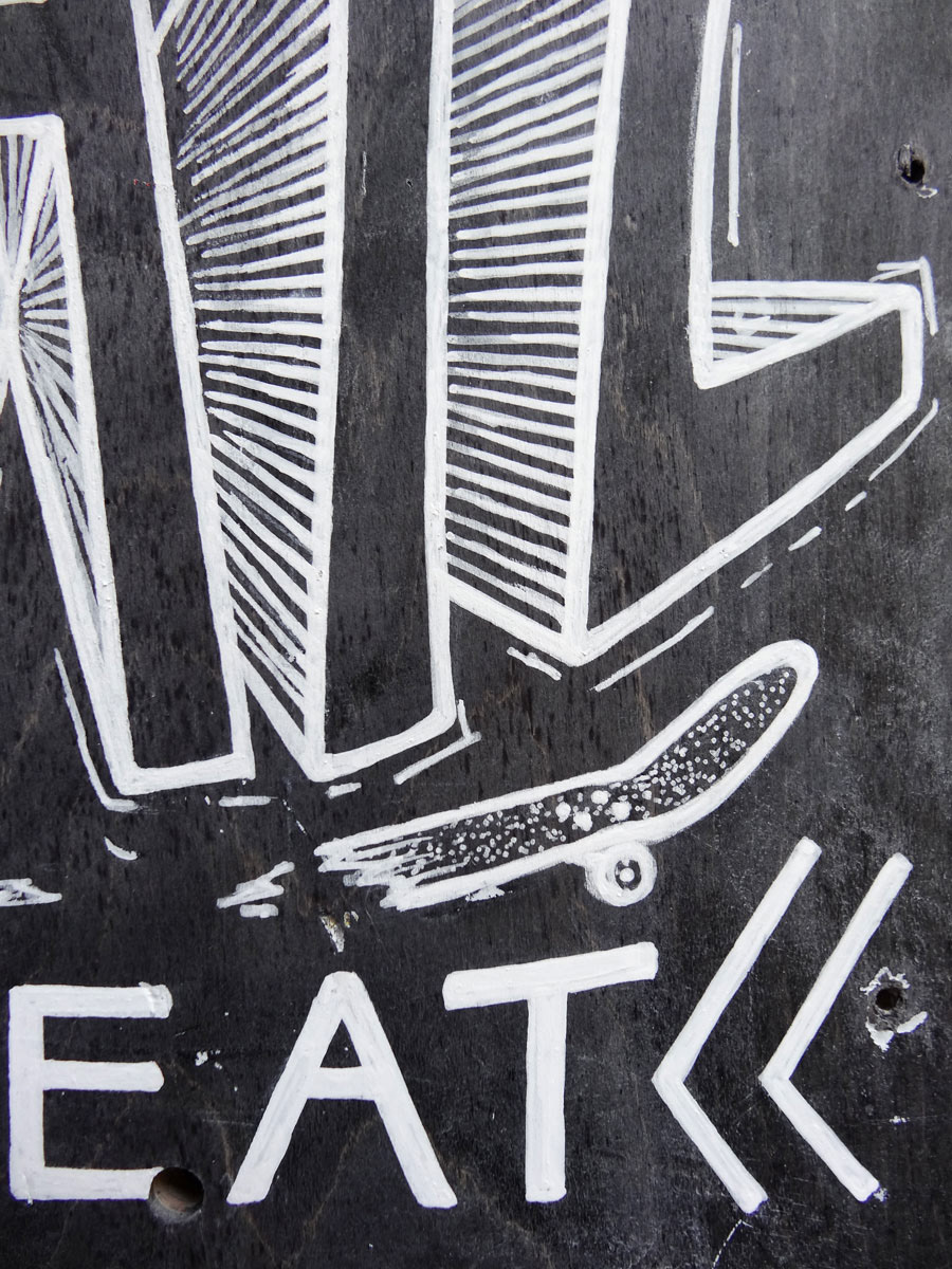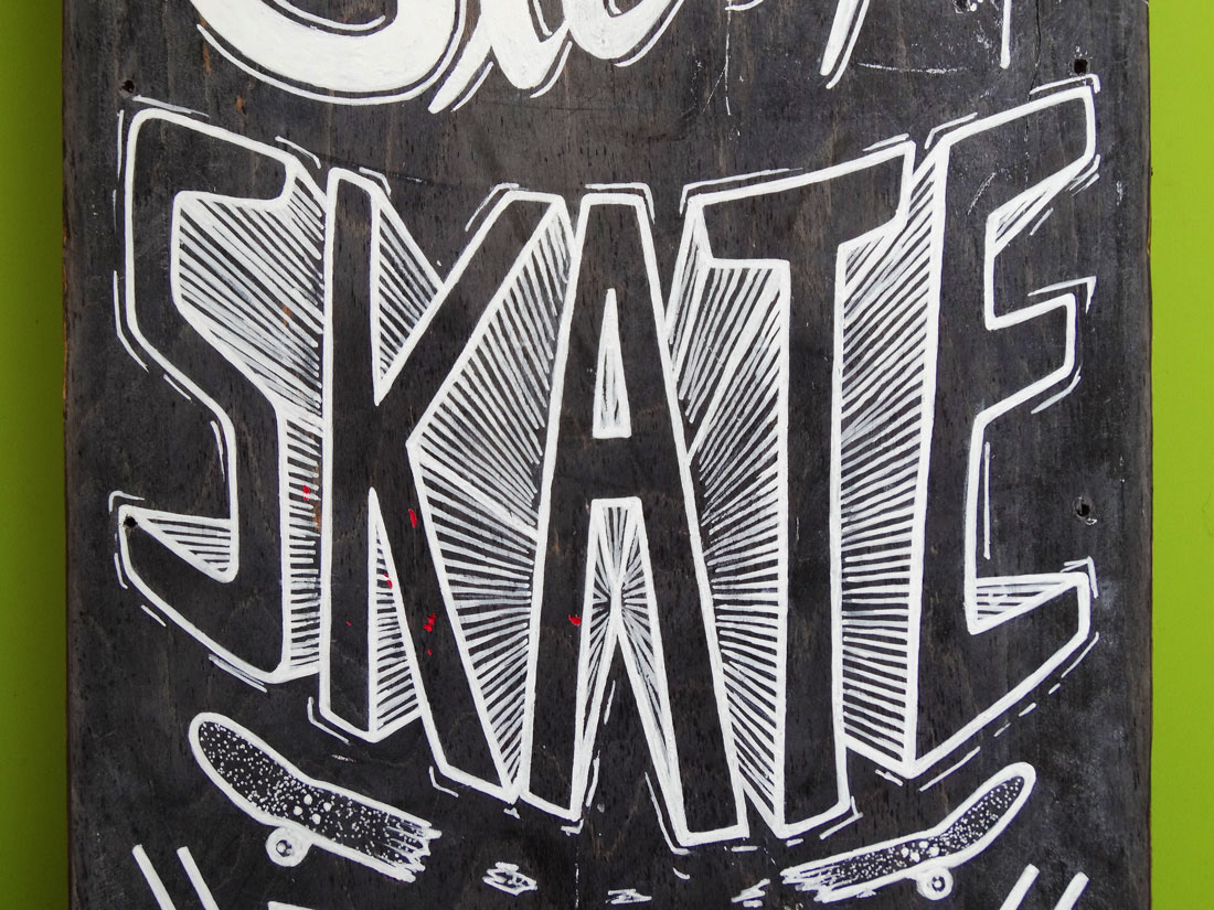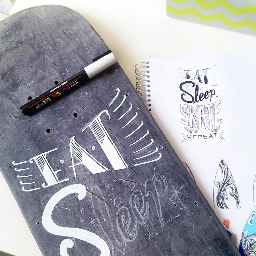 Project: Designing skate and surf board graphics on paper and digital is a lot of fun. But sometimes it doesn't seem quite fulfilling. If a design turns out really cool on the digital template, I can't wait to see it on actual boards. So I went to a skate park nearby and asked for a few used decks to sand off and paint on...